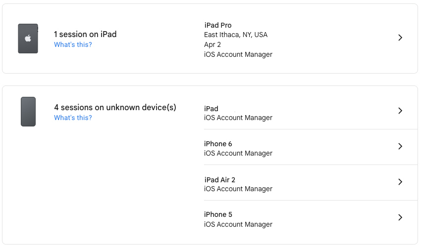 That said, if you ever notice any unusual account activity, look at your trusted device lists to ensure you recognize everything. If there’s a device you don’t recognize or one that was used at an unfamiliar place or at a time when you were otherwise occupied, immediately remove it and change that service’s password.