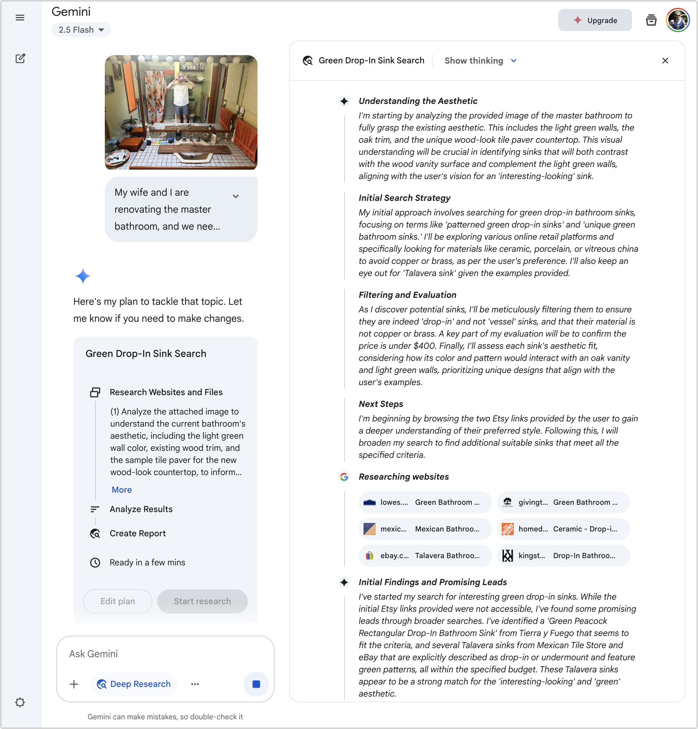 Most chatbot responses are quick and relatively brief, but if you want a much more detailed answer on a topic, enable a “deep research” option. That causes the chatbot to break the task into smaller steps, perform each one in order, and assemble the result into a detailed report. It might take 10–15 minutes or longer. Perplexity, ChatGPT, and Gemini are the top tools in this area and are worth trying for a range of possibilities, from gift ideas and travel plans to background information on home projects.