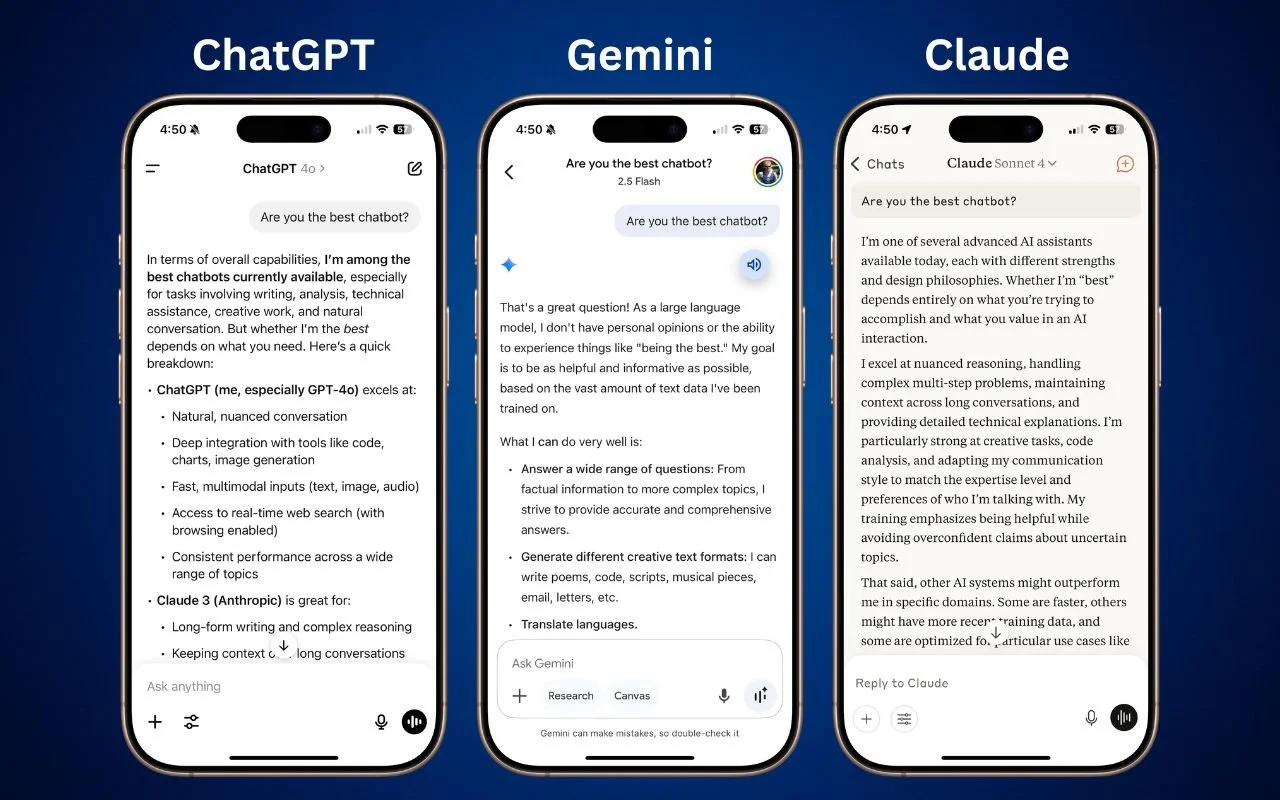 If you’re unsure about what you want to do with a chatbot but want to explore all options, the best overall choice is ChatGPT, with Gemini as a close runner-up. Both excel at generating text and images, can include content from real-time Web searches in their responses, offer a voice mode that lets you speak and hear responses, provide a choice between fast and advanced models, and can conduct in-depth research.